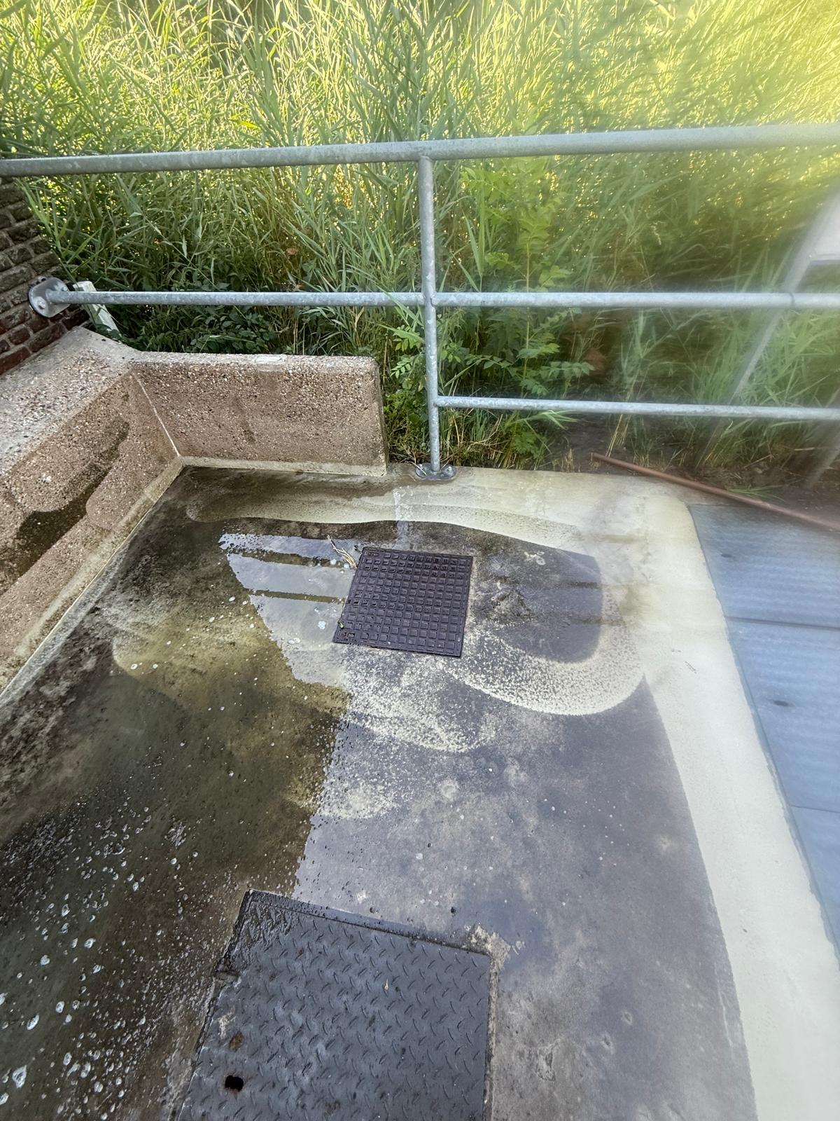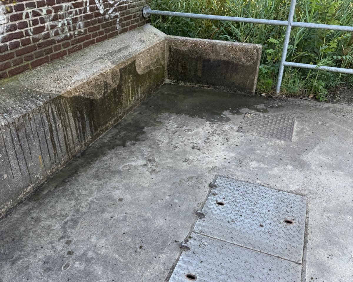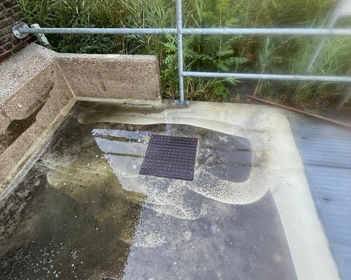Betonnen bak schoonspuiten in Amsterdam Noord