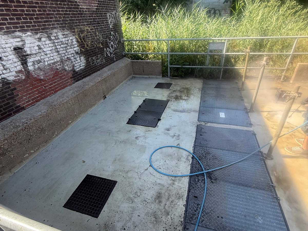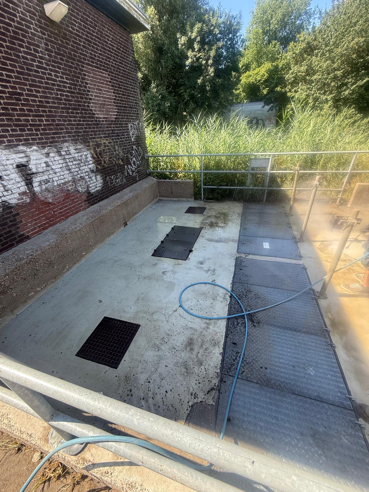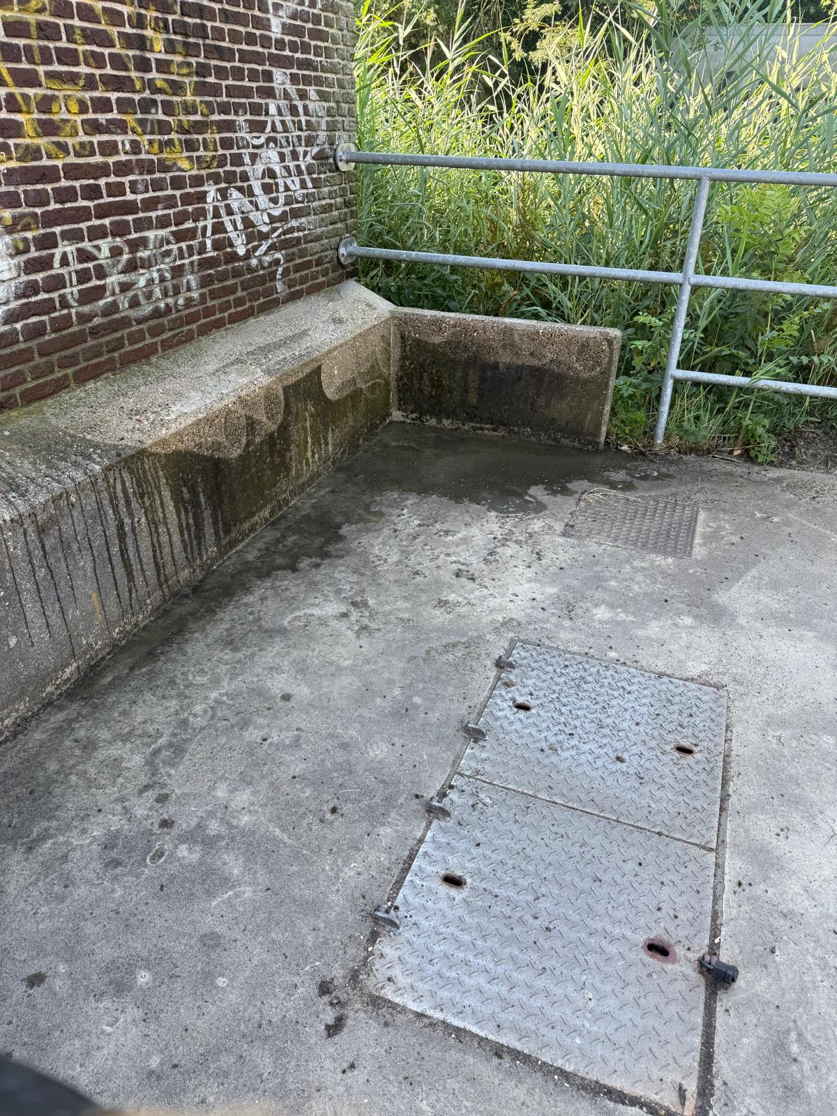 Betonnen bak schoonspuiten in Amsterdam Noord